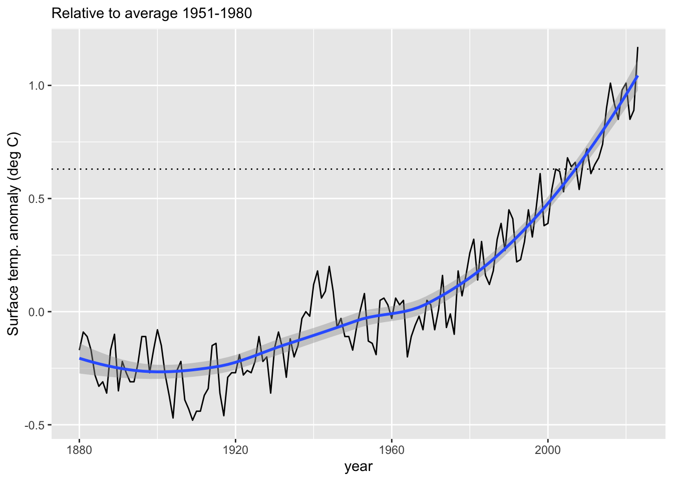 geom_point(data = temps, mapping = aes(x = year, y = deg_C),